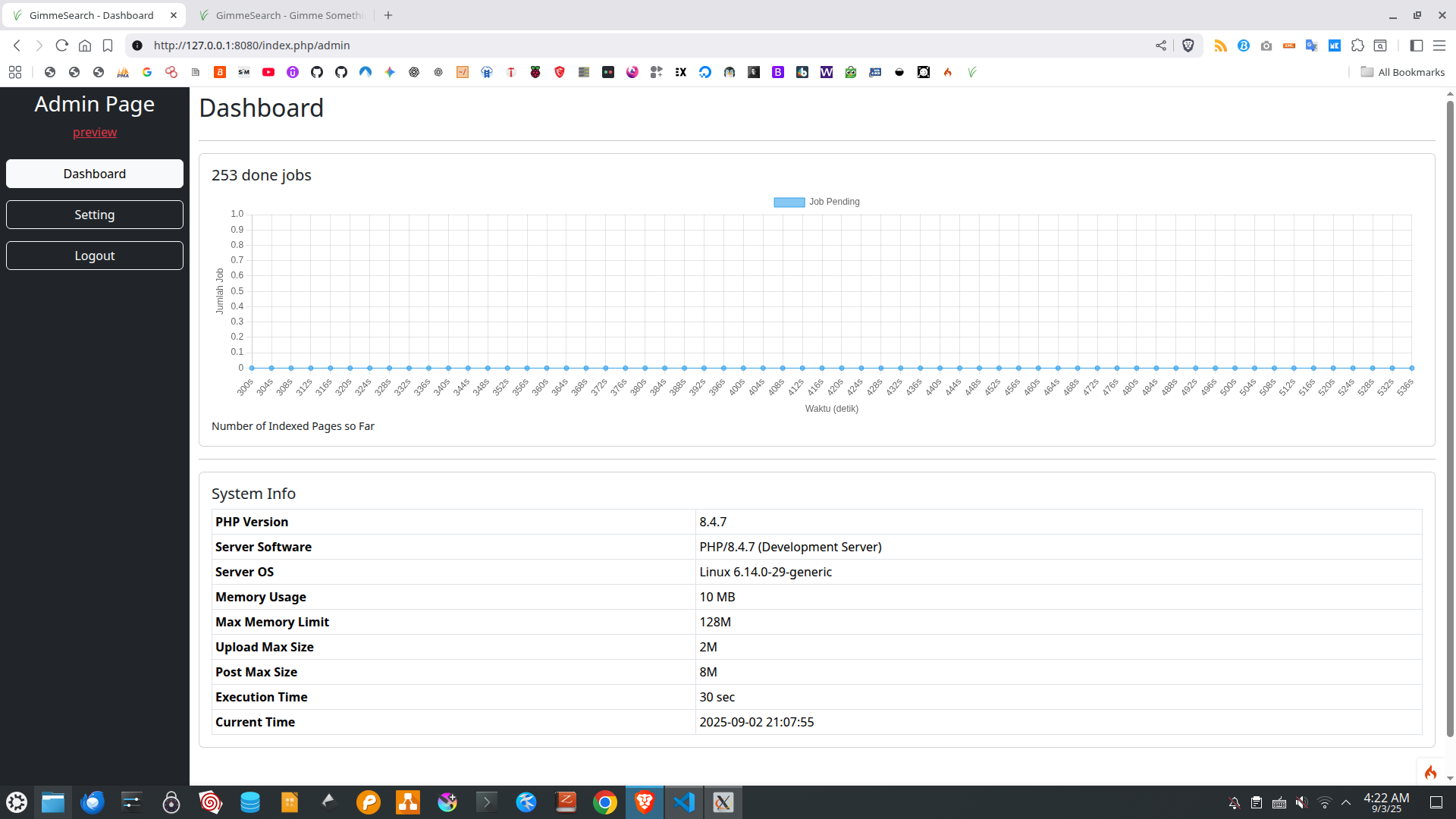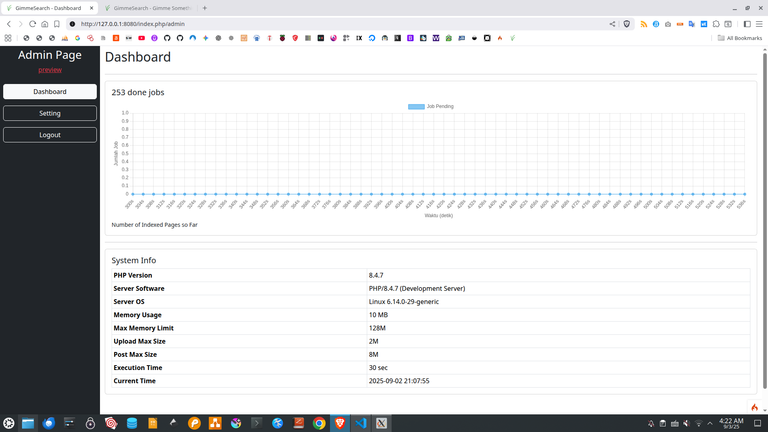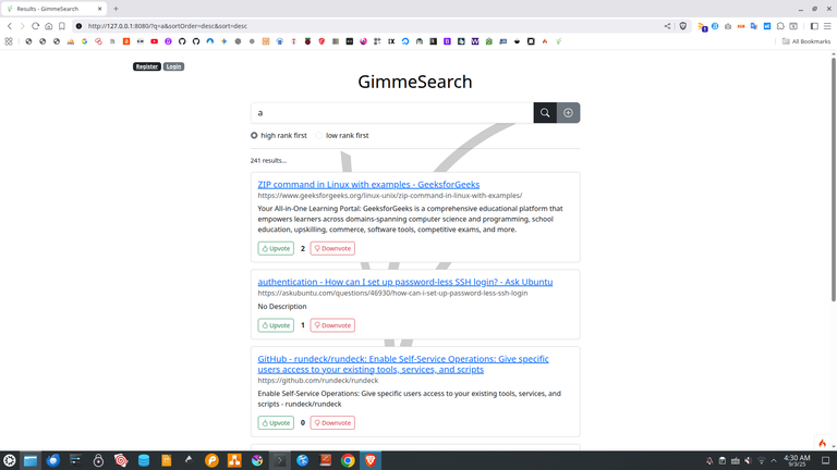 Search Engine Baru ini Bernama GimmeSearch Pro!2025/09/03 - 04:28:03 RAKIFSULKabarSaya sedang mengembangkan search engine berbasis bookmark html.Ide utamanya adalah: ranking dilakukan dengan voting publik.Apakah saya akan membuat beta release-nya? Mari kita lihat.Berikut ini screenshotnya:Read other posts← Tutorial llama.cpp Seri 6 - Kenapa Bash Begitu Menarik Cara Build Ollama dari Source Code dan Mencoba Menjalankannya →